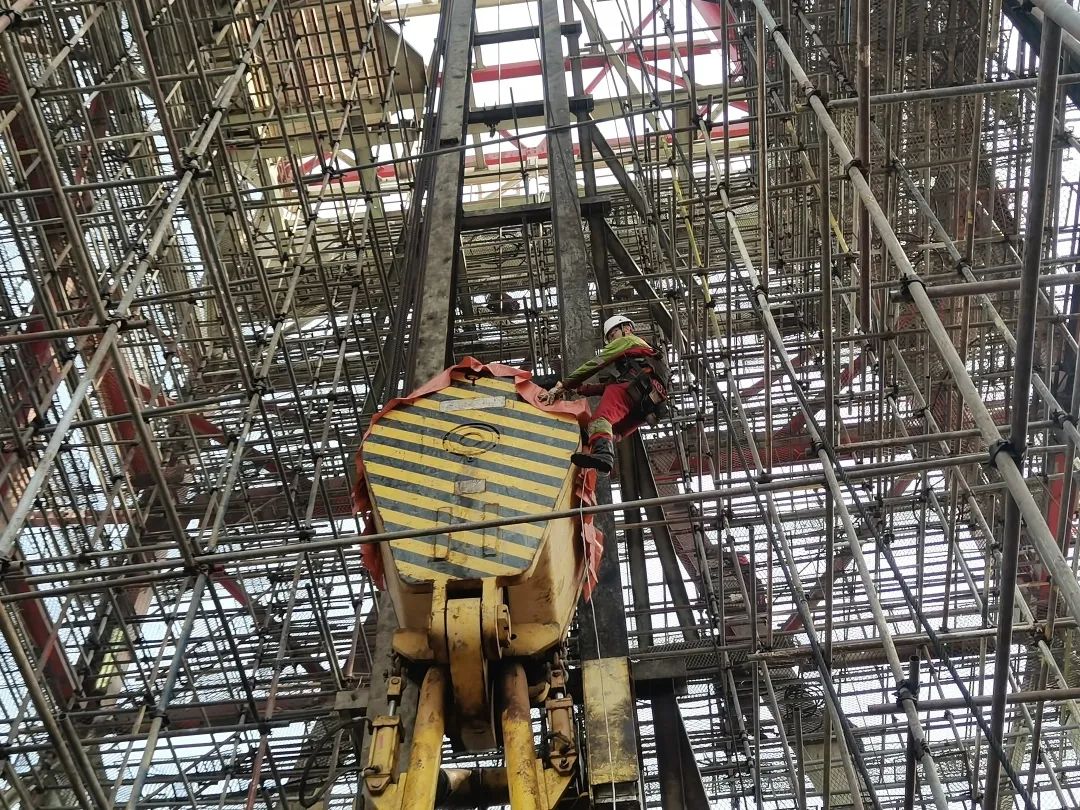 此次作业历时3小时10分钟,该工序是大型LNG储罐安装施工中难度最大、工艺最复杂、风险最高的工程节点之一。据悉,该储罐拱顶重量约为895.678吨,拱顶结构跨度长达86.84米,拱顶升标高60.255米。