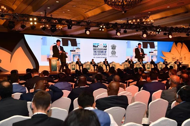 在“IEF16”全体会议“全球转型:未来全球能源安全─寻找新的平衡”主题讨论中,王宜林以及印度能源企业领导人与来自伊朗、日本、卡塔尔、土耳其、俄罗斯五国的能源部长们围绕这个主题展开积极对话,进行热烈讨论。