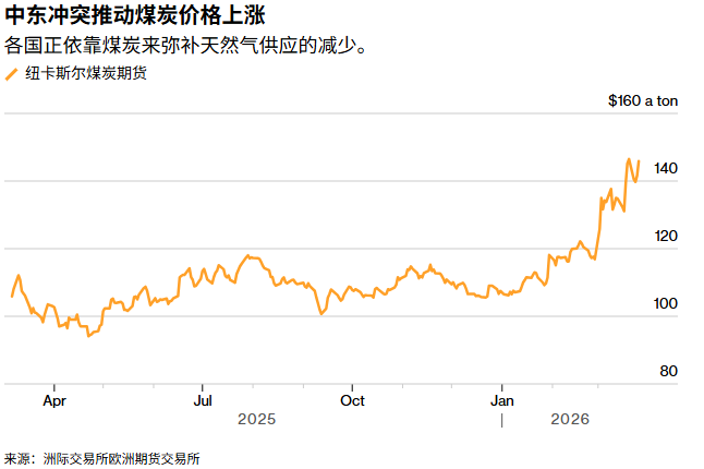 亚洲可能是煤炭消费量增长最快的地区,该地区严重依赖中东石油和天然气,且许多国家吸收更高成本的能力有限,已造成严重经济损失。作为亚洲电厂燃料基准的纽卡斯尔煤炭期货价格今年已上涨约三分之一,本月初触及2024年后的最高水平。